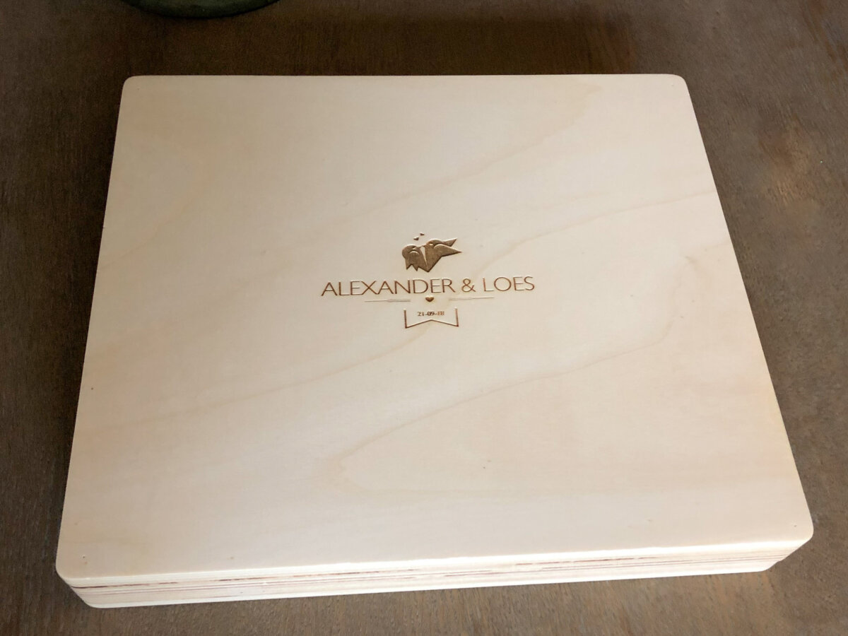 - Je album goed beschermen in een luxe opbergbox. Bij dit houten fotoboek wordt de Smartbox meegeleverd. Zo heb je een box in hetzelfde hout en met dezelfde opdruk. Keuze hierbij voor ruimte voor je USB met alle foto’s en video’s.