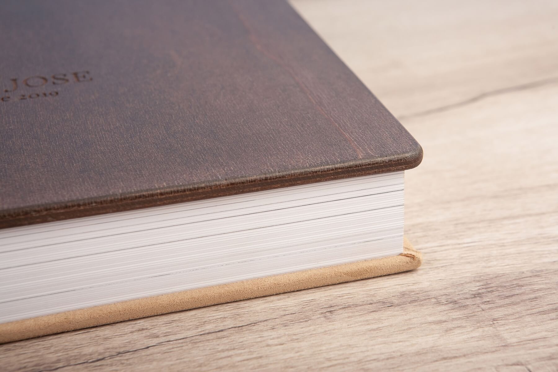 - Normale binding – de fotobladen zijn niet makkelijk buigbaar en verdikt met karton tussen de bladen. De fotobladen zijn ook hierbij vlakliggend.