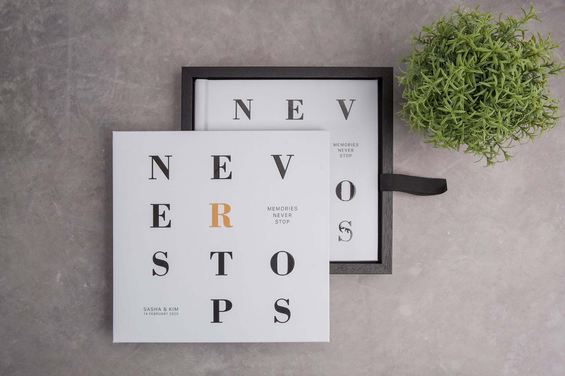 En om het plaatje helemaal compleet te maken, kan de titel in een UV-glanslak op de kaft van het fotoboek en de box. Als je er met je vingers overheen gaat, kun je het ook echt voelen.